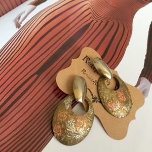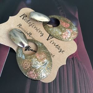 Vintage 80's mixed metal floral earrings. These drop earrings with gold, silver & a muted color floral pattern will add Fabulous to your favorite outfits!