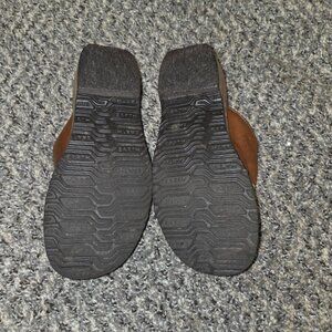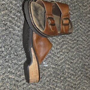 Worn in great condition. Vintage Earth shoe slides in brown with GELRON 2000 technology. Has an all-wood heel. Soles in great condition. No major imperfections to note. No shoe box included.