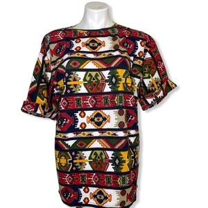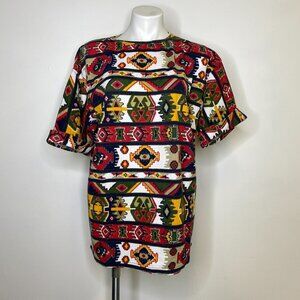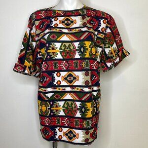 Simply Basic Vintage Earth Tone Patterned Knit Shirt