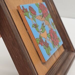 Vintage 90s Earthtones Hummingbird Framed Tile Trivet Art Ceramic Hand Painted Pottery, Arizona USA.