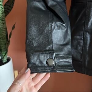 Vintage East 5th 100% Genuine Leather Black Jacket Collar Belt Tie Coat Size XL