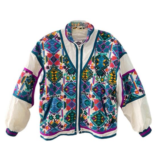 Vintage East West Snow Jacket Medium Aztec Southwestern 90s Full Zip Lined Puff