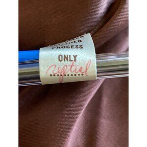 This vintage East West Musical Instruments Co. leather jacket has wooden buttons and breast pockets. The inside label has Reptila written in ink along with the numbers 2001 and 13. There is a Made in the USA tag just below the leather company tag. The lining is polyester with a Dry Clean tag designating leather care. The word reptial is handwritten on the dry clean tag.