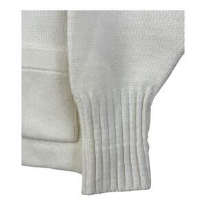 The Vintage East-Tenn Medium Orlon Acrylic Knit Award Sweater Cardigan is a classic and stylish piece perfect for women who appreciate preppy and retro fashion. Made from solid white acrylic knit fabric with a V-neckline and long sleeves, this cardigan features button accents and convenient pockets. With a nod to 80s and 90s style, this designer sweater is ideal for those looking to add a touch of nostalgia to their wardrobe. The East-Tenn brand adds a unique touch to this timeless piece, making it a standout addition to any collection.