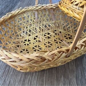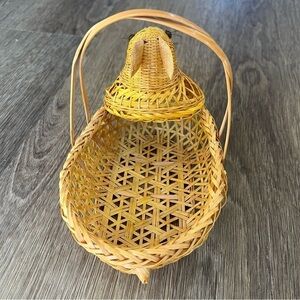 Vintage, Easter BUNNY RABBIT BASKET, GLASS EYES, WOODEN EARS, VERY CUTE! 6” tall, 5” wide and 7.5” long