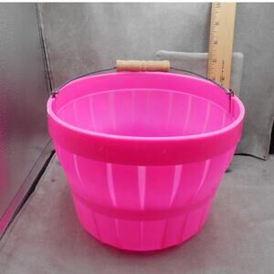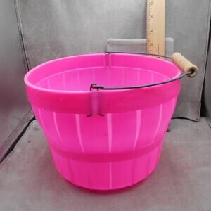 Vintage Easter Blow Mold Pink Bucket w/Wood Handle Spring Candy Basket. Vintage Blow Mold Pink Basket is great for treats, gathering eggs, or to add to your Easter/Spring decor! No markings. Please see pictures.