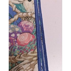 Vintage Easter Bunny Spring Tulips Tablecloth 60x82 Rabbits Blue Eggs Flowers. New, unused. Beautiful blue edging.