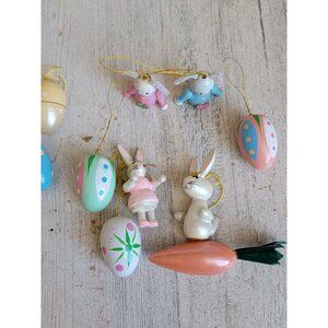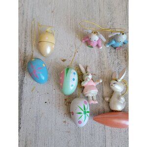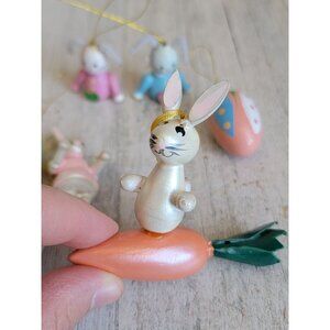 Vintage Easter Bunny carrot egg wooden miniature ornament spring set