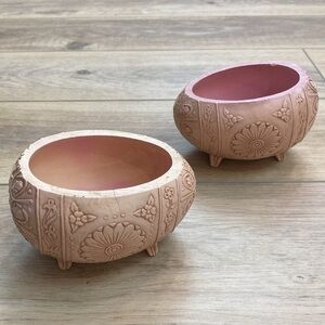Set of two vintage molded resin FTD decorated Easter egg footed planters flower pots. There’s some fading consistent with age and small crack on one at the top as pictured.