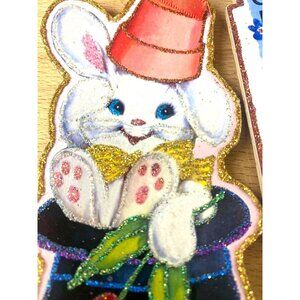 Step into a whimsical Easter tale with these glittered die-cut ornaments featuring charming bunny, chick, and duck designs. Perfect for adding retro charm to your holiday decor.