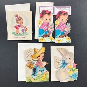Vintage Easter Greeting Cards Envelopes Ephemera Flocked Sugar Crystal Effects