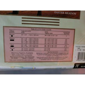 Vintage Easter Medow Bunny Tobin Holiday Tablecloth Size 70" Round, Cotton New