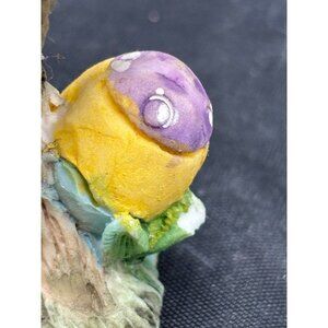 Small chip on the bird's tail and a minor leaf damage. Height = 5 inches, Width = 6 inches.
