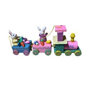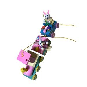 Vintage Easter Train Hand Painted Wood Train Hanging Ornament
