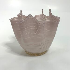 Vintage Ebeling Reuss Purple White Ribbon Handkerchief Bowl Vase Made Italy One small chip along the top edge, measures approx. 5” in diameter x 4.5’ tall