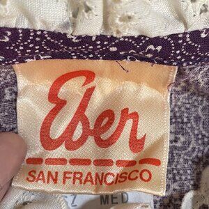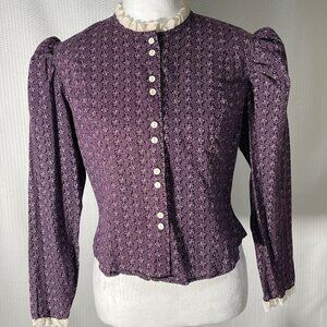 Vintage Eber Victorian Button-up Blouse Top Prairie Floral Fitted Puff Sleeve