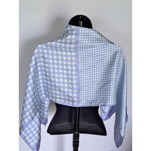Vintage Echo Blue & White Gingham Silk Scarf Rectangular Lightweight Womens