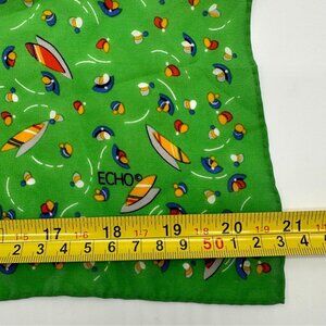 Vintage Echo Green Scarf Flying Saucers Hand Rolled Edge Retro Retro Fashion