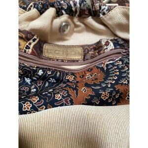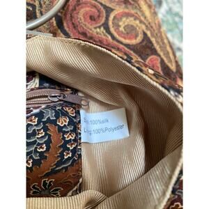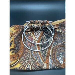 VINTAGE Y2K ECHO Brown Gold Silk paisley Round Silver Metal Handles Handbag 14 x 8