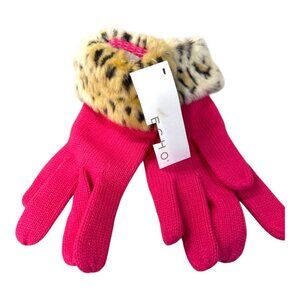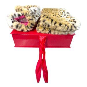 Vintage Echo Soft Pink Knit Scarf Gloves Set Faux Leopard Fur Trim Gift Box NEW