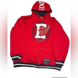 Ecko Unlimited Defined by Design Red Hoodie with Stitched lettering Size XXL