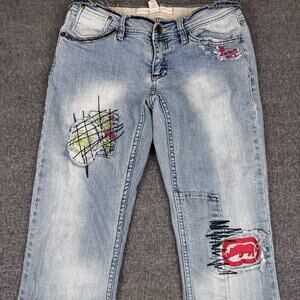 Vintage Ecko Unltd Patchwork Jeans Women’s 5 Blue Grunge Distressed Skate Y2K