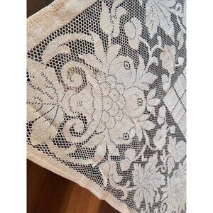 Vintage Ecru / tan lace 70x58 Tablecloth MCM Rectangle