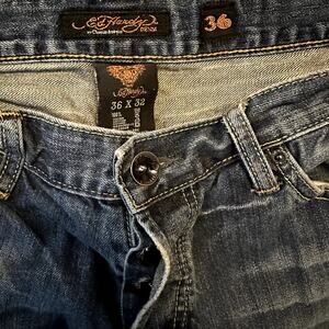Vintage Ed Hardy Christian Audigier Jeans Y2K Embroidered Distressed 36x32