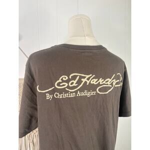 Vintage Ed Hardy Skull & Dagger Shirt Size Large Rhinestone Top