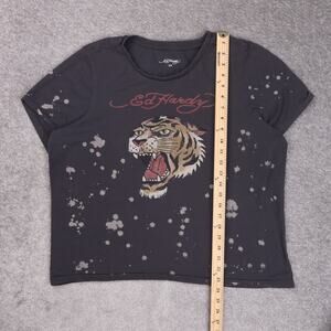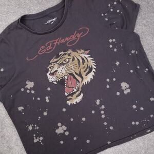 Vintage Ed Hardy Tiger Black Bleach Splash XL Short Sleeve Single Stitch T-Shirt