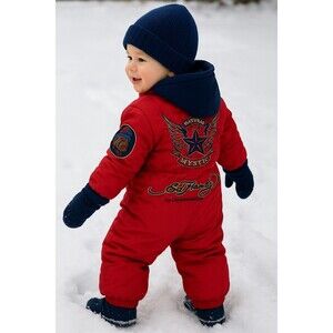 Vintage Ed Hardy Toddler Snowsuit 18–24M Red Embroidered Natural Mystic RARE