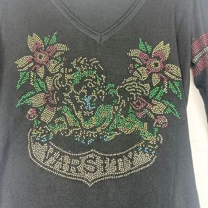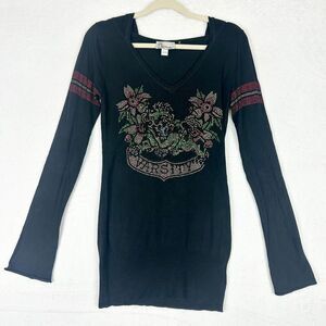 Vintage Ed Hardy Y2K Bling Rhinestone Hooded Shirt Size Small Angora Cashmere