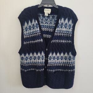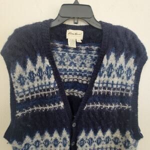Vintage Eddie Bauer 100% Wool Sweater Vest Argyle Button Front Sz XXL Fisherman
