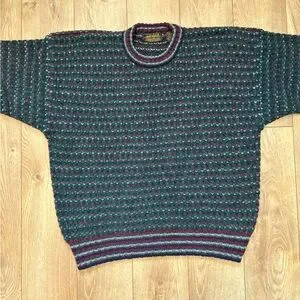 • Multi-color knit (navy, green, maroon tones)