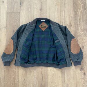 Vintage Eddie Bauer Bomber Jacket Men Large 80s 90s Gray Wool Elbow Patch