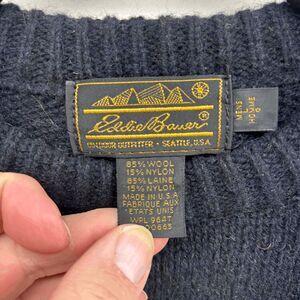 Vintage Eddie Bauer Christmas Poinsettia Made USA Mens L Black Red Wool Sweater