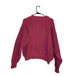 Vintage Eddie Bauer Chunky Sweater Large Maroon 100% Cotton Cable-Knit Grandpa