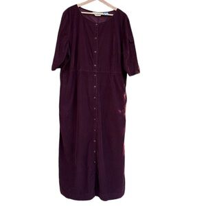 Vintage Eddie Bauer Corduroy Maxi Dress Shirt Dress Button Down Burgundy XXL