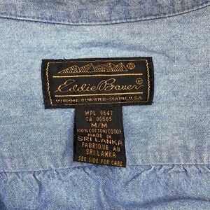 Vintage Eddie Bauer Cottagecore Denim Floral Button Front Short Sleeve Dress