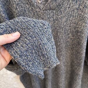 Vintage Eddie Bauer men’s medium sweater in a textured gray cotton knit. Classic 90s vibe with a unique crossover button detail at the collar. Made of 100% cotton, perfect for layering or wearing solo. Timeless and comfortable.