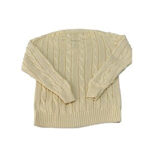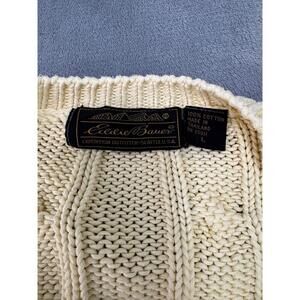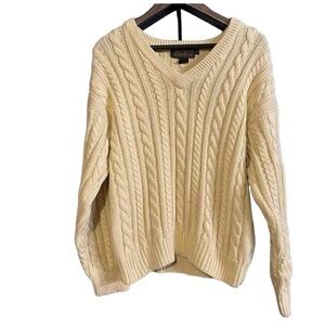 Vintage Eddie Bauer Cream VNeck Long Sleeves Cable Knit Sweater Large