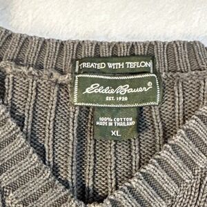 This Vintage Eddie Bauer Dark Green Ribbed Cotton Crew Neck Sweater in size XL is a classic and timeless piece perfect for casual occasions. Made from 100% cotton in a tight-knit fabric, this long-sleeve sweater features a solid green color and a V-neckline for a stylish and comfortable look. The pullover style and all-season versatility make it an essential addition to any man's wardrobe, ready to be worn in the winter, fall, or spring. Made in the United States by Eddie Bauer, this sweater exudes quality and sophistication.