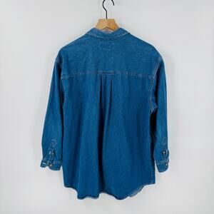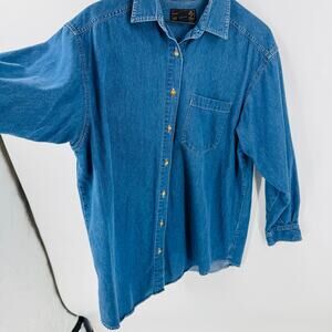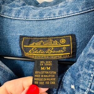 Vintage Eddie Bauer Denim Shirt Long Sleeve Size M Medium Classic Closet Staple
