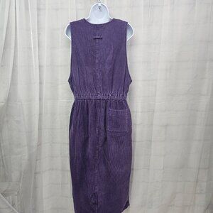 Vintage Eddie Bauer Dress Midi Coverall Corduroy Purple Midi Preppy Cottage L