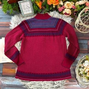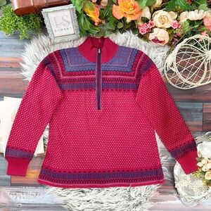 Vintage Eddie Bauer Fair Isle Half-Zip Red and Blue Long Sleeve Sweater, L