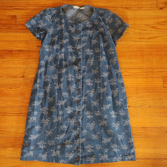 Vintage Eddie Bauer Floral Denim Dress Size LP