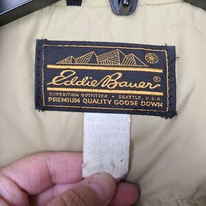 Vintage Eddie Bauer Goose Down Coat Women Large Beige Quilted Ski Parka Jacket