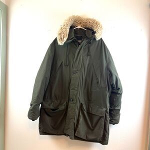 Vintage Eddie Bauer Green Superior Polar Parka Sheep Fur Hood Down Mens Size XL