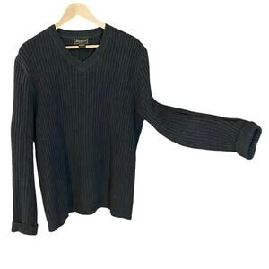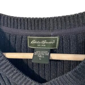 Vintage Eddie Bauer Heavy Rib Knit Cotton Sweater Tall L Gray V-Neck Australia