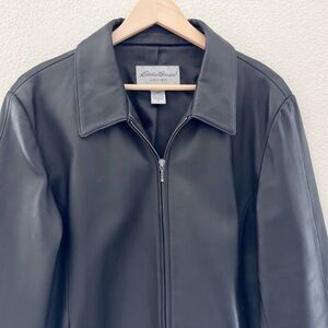Vintage Eddie Bauer Lambskin Leather Jacket Women's Black XL Classic Retro 90s